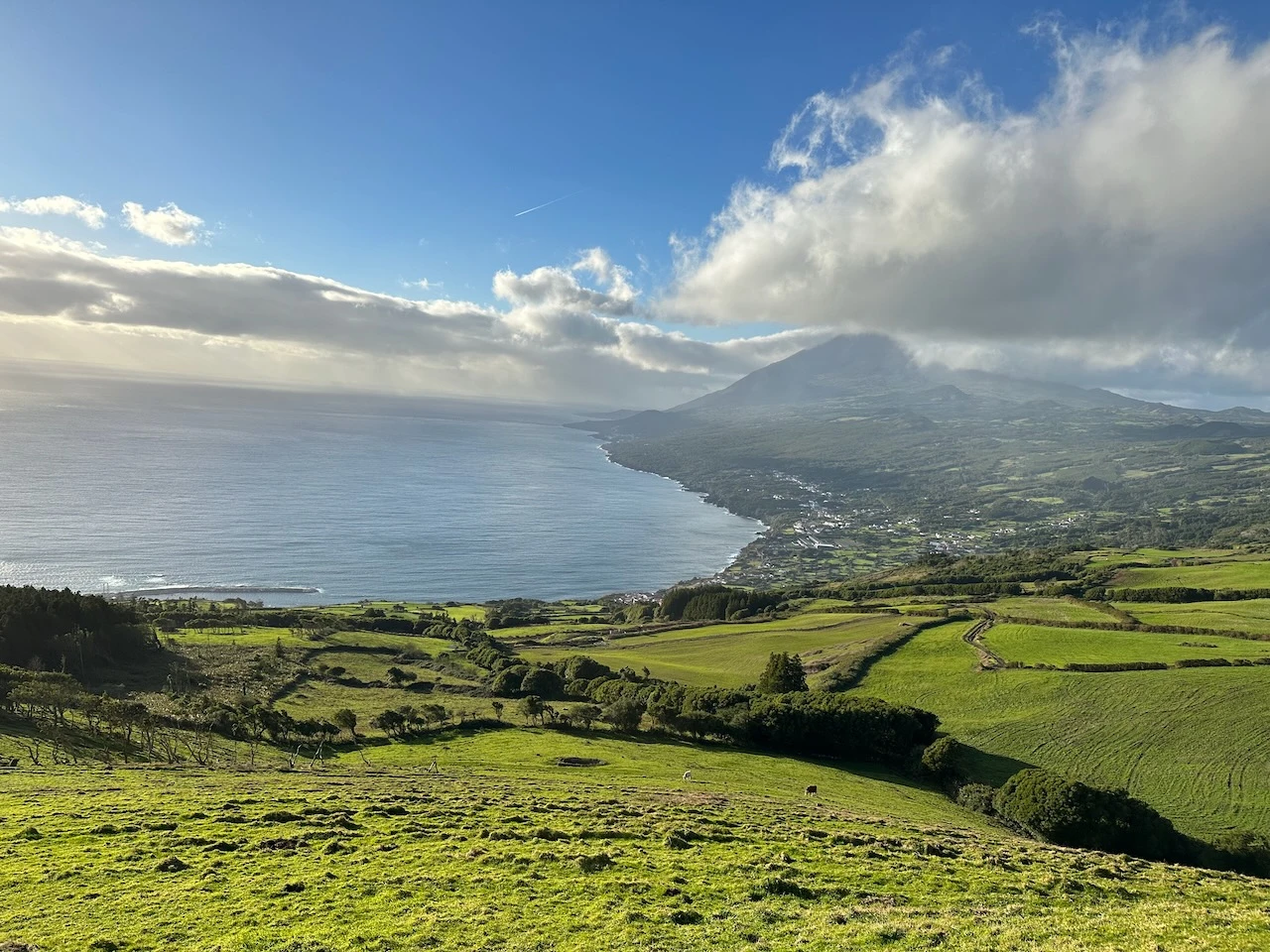 Very short hike (10 minutes) to a hill with amazing views of São Jorge Island (Google maps)